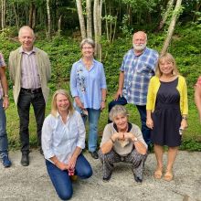 Wir sind begeistert über so viel Interesse: fast 50 DFG-Mitglieder haben am 9. Juli mitten im Montabaurer Stadtwald einen neuen Vorstand gewählt. Von links nach rechts hinter Corona-Mundschutz verborgen: der neue DFG-Vorsitzende Bernhard Gressmann, Beisitzer Ulrich Czerwanski, Beisitzerin Dr. Gabriele Allard-Rudloff, Gudrun Zoll, zuständig für Presse und Internet, die stellvertretende Vorsitzende Rita Krock, Beisitzer (und Koch) Günter von Waechter, Schatzmeisterin Monika Hummelt-Wittke und Beisitzerin Carole Tursini-Selbach.