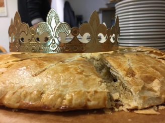 Alle Jahre wieder zum Neujahrsempfang Galette des Rois - Dreikönigskuchen „La galette des rois“ ist ein Blätterteigkuchen, der mit „Frangipane“ gefüllt ist. Der „Frangipane“ ist eine Creme aus Mandelpuder, Zucker und „crème patissière“. Der Kuchen ist eher trocken, er wird gerne l…
